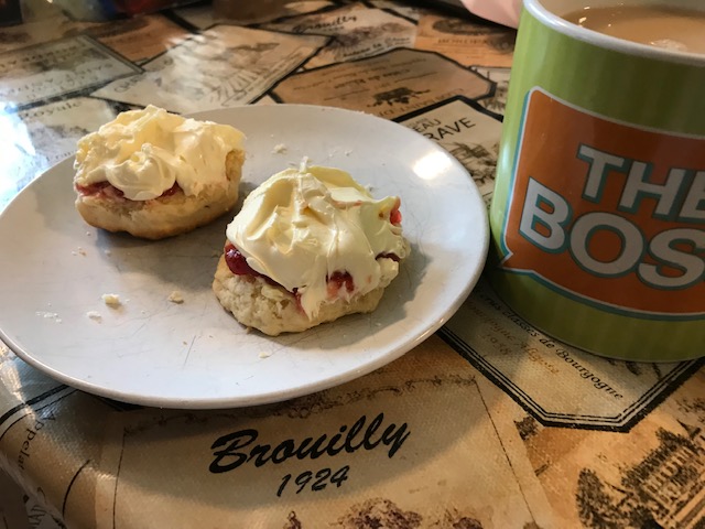 I’m not sure if she sent our daughter out shopping or if she went of her own accord but the end result was that there was lashings of jam and cream and plain scones. No-one should be allowed to eat a cream tea unless it is with plain scones and as you can see from the photograph I have indulged/made a pig of myself.