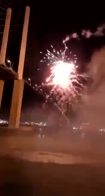 FIREWORKS SHOT AT QEII BRIDGE PROTESTERS.