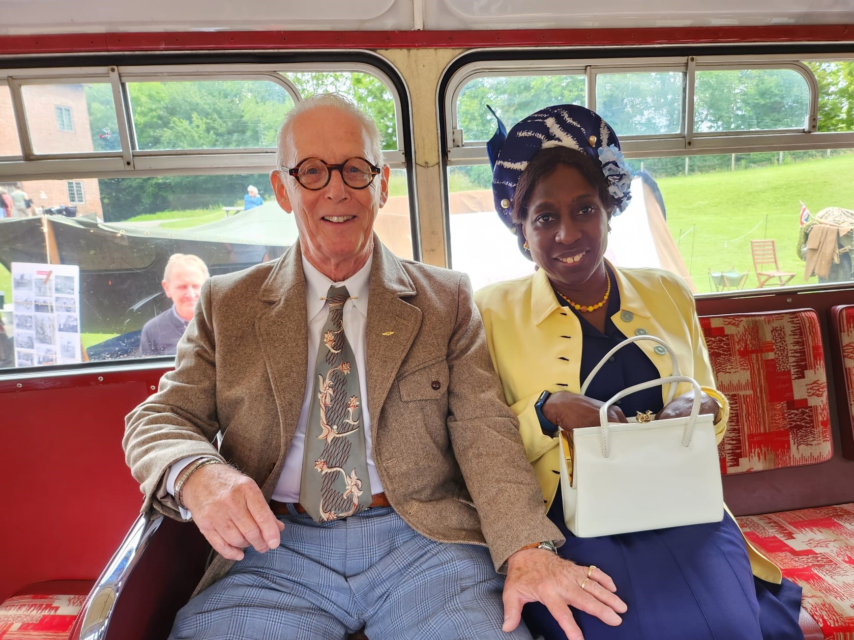 When the rain stopped we had a quick ride on a bus with our friends and the leader of the Kalamazoo Dance band who we danced to in Woodhall Spa and also later in the evening here.