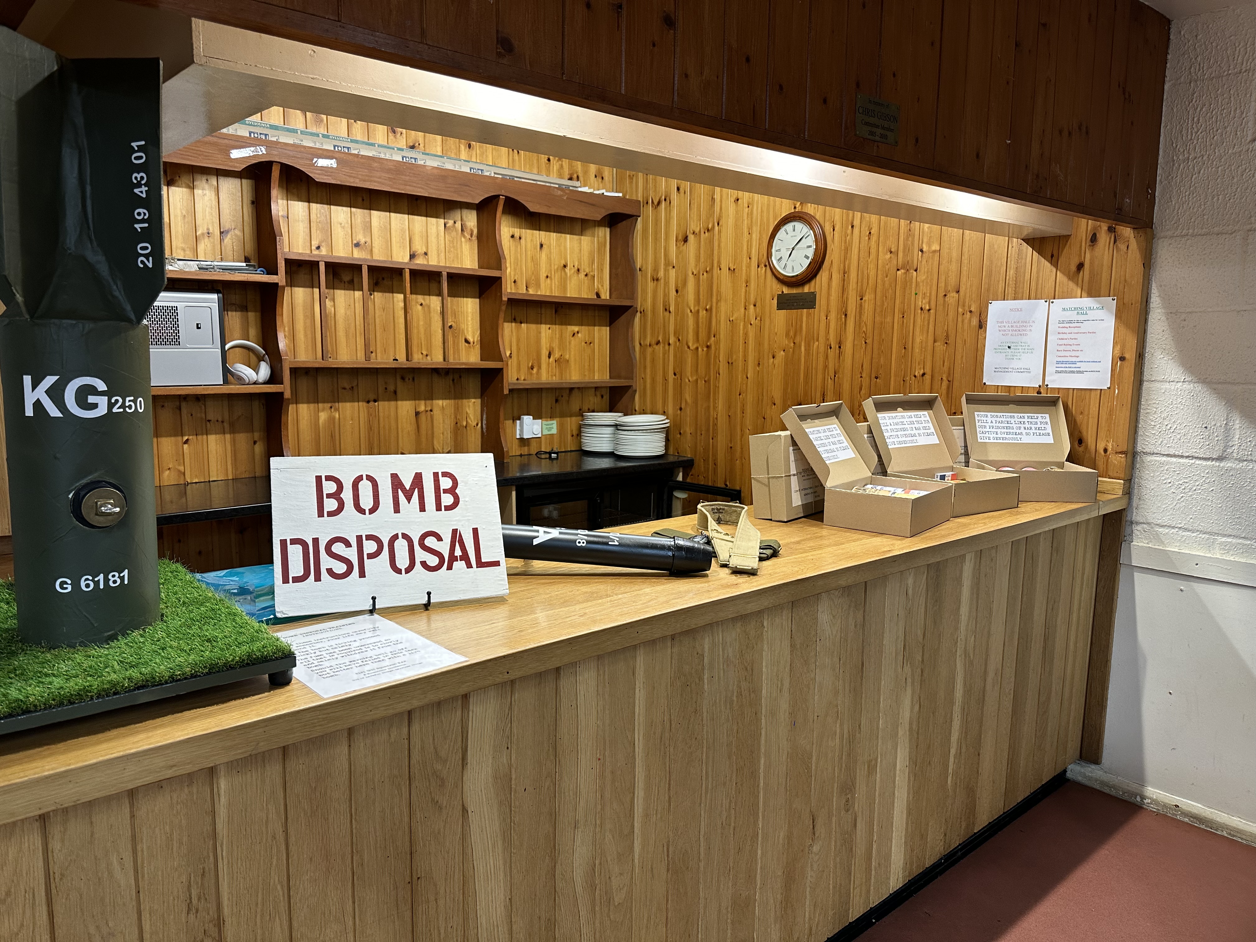 The Red Cross parcels came in very handy for the POW’s but no-one managed to remove the fuse from my disposal training bomb without the warning bell sounding.