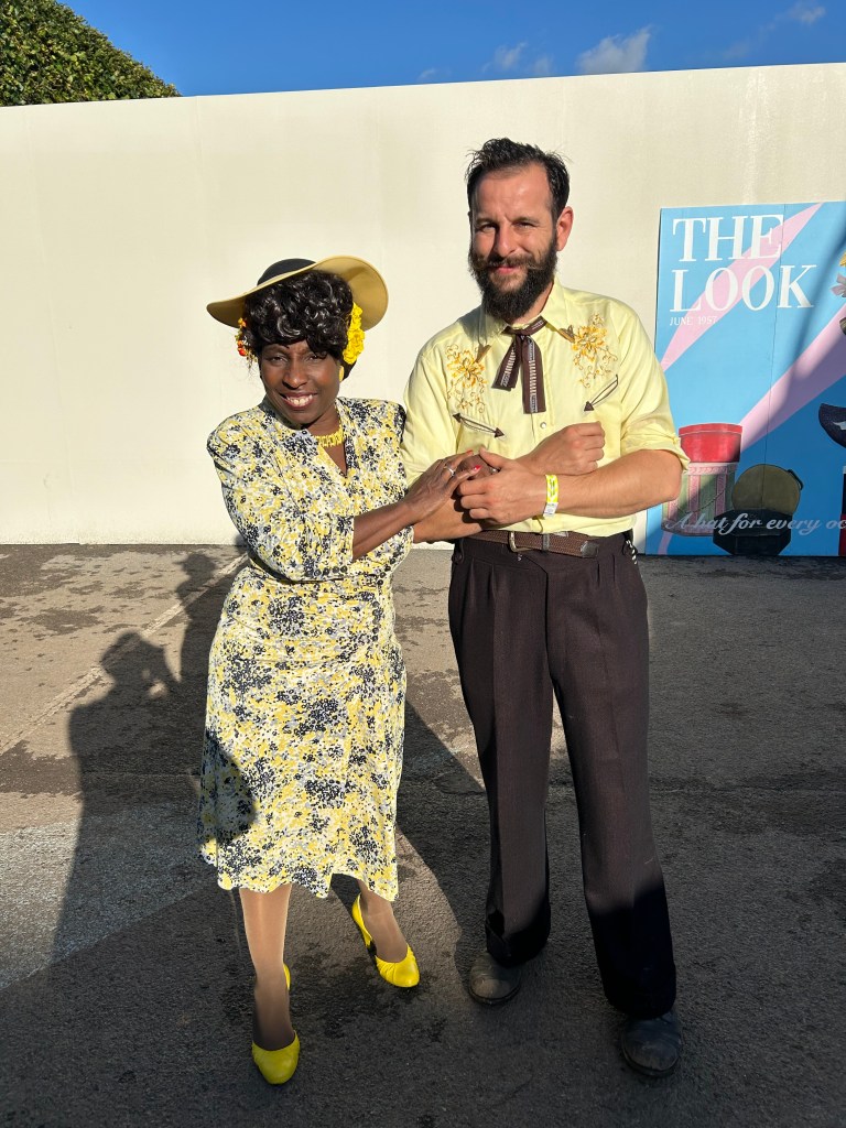 What a fabulous time we had at the Goodwood Revival this year, meeting friends, dancing, getting picked for the best dressed photograph each day and vintage clothes shopping, what more can you ask for a weekend. We were very busy being filmed for an interview for Goodwood films to discuss our outfits and love of vintage, and another photo shoot before we left on Sunday. Angella has also been chosen to be part of the Dandy Wellington family which entails another photo opportunity, so the weekend was busy, busy busy!