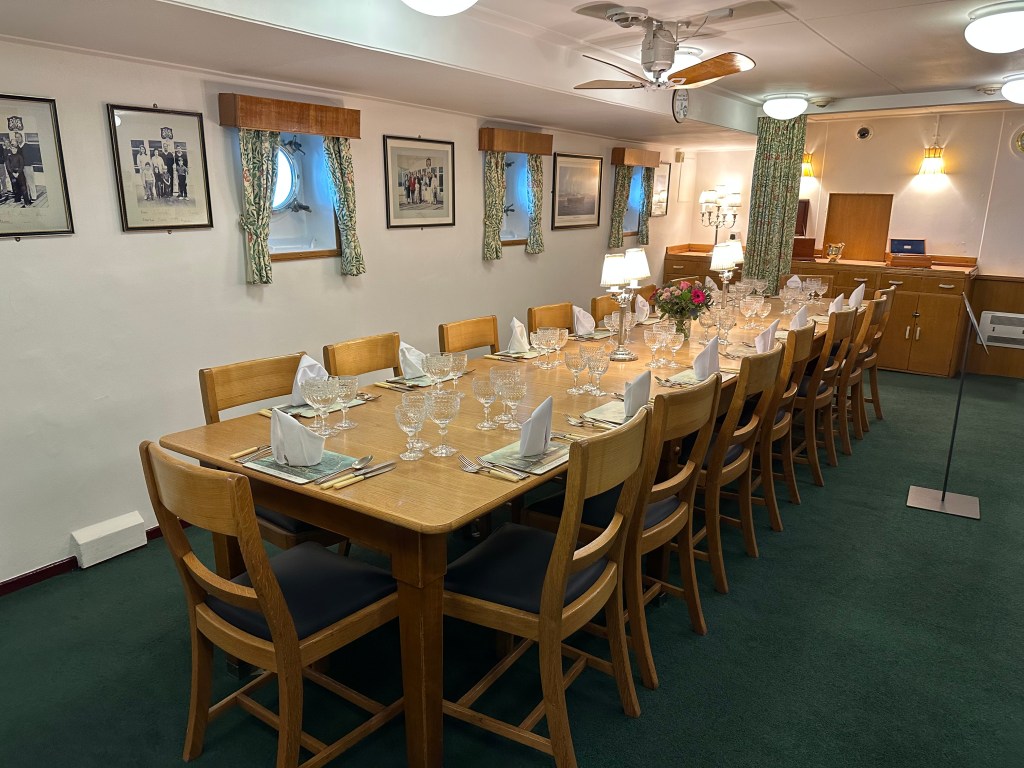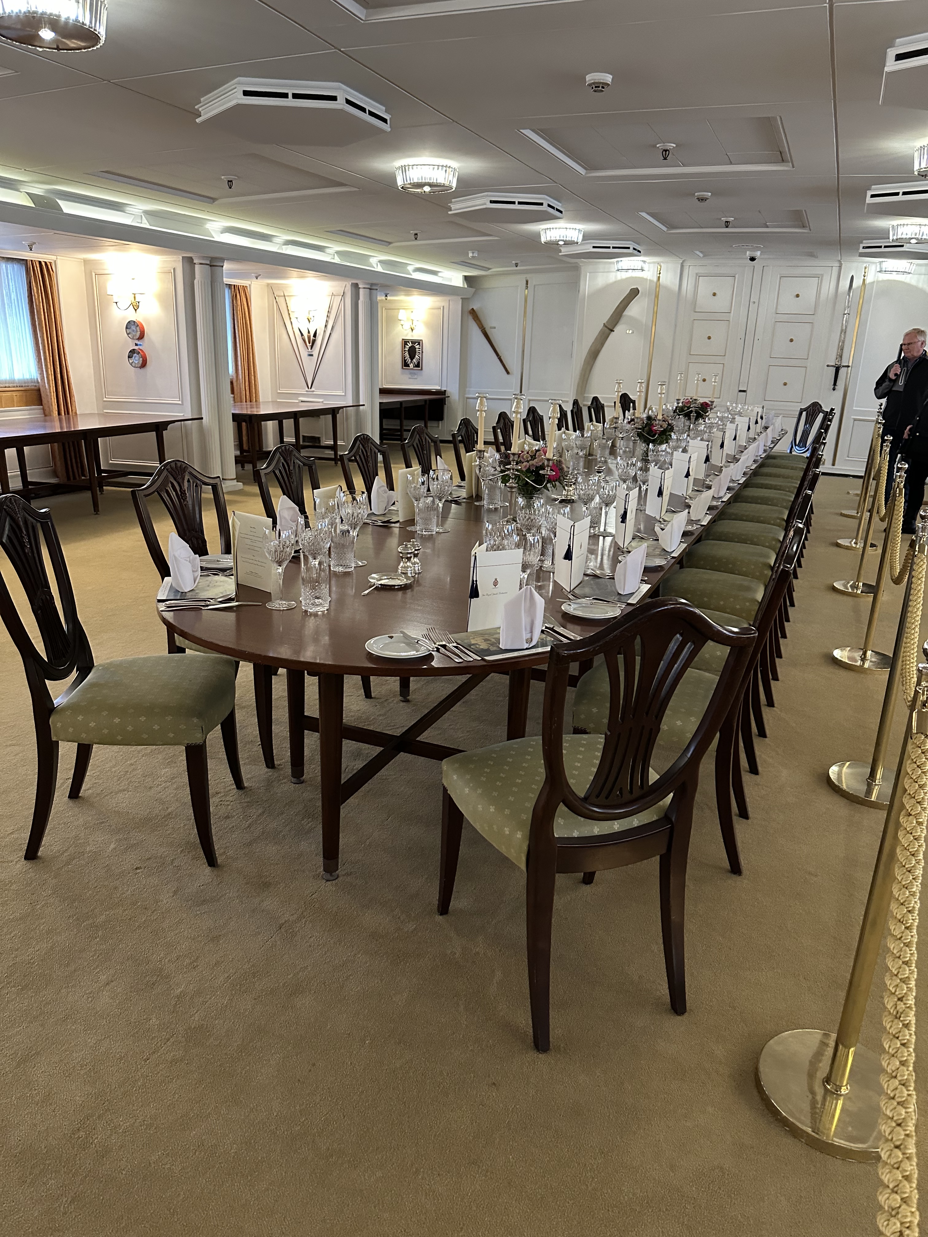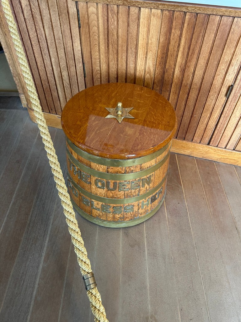 One of the many clocks on board stopped at one minute past three, the last time the Queen was piped ashore.